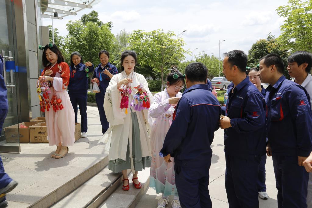 活動現(xiàn)場,別具一格的穿漢服發(fā)香包活動正在如火如荼地進(jìn)行著。志愿者們身著華美的漢服,仿佛是穿越時空而來的古人,為職工們送上香包送去祝福和安康。漢服與香包的結(jié)合,不僅讓職工感受到了傳統(tǒng)文化的魅力,也讓人們在忙碌的工作中找到了一份寧靜和美好。